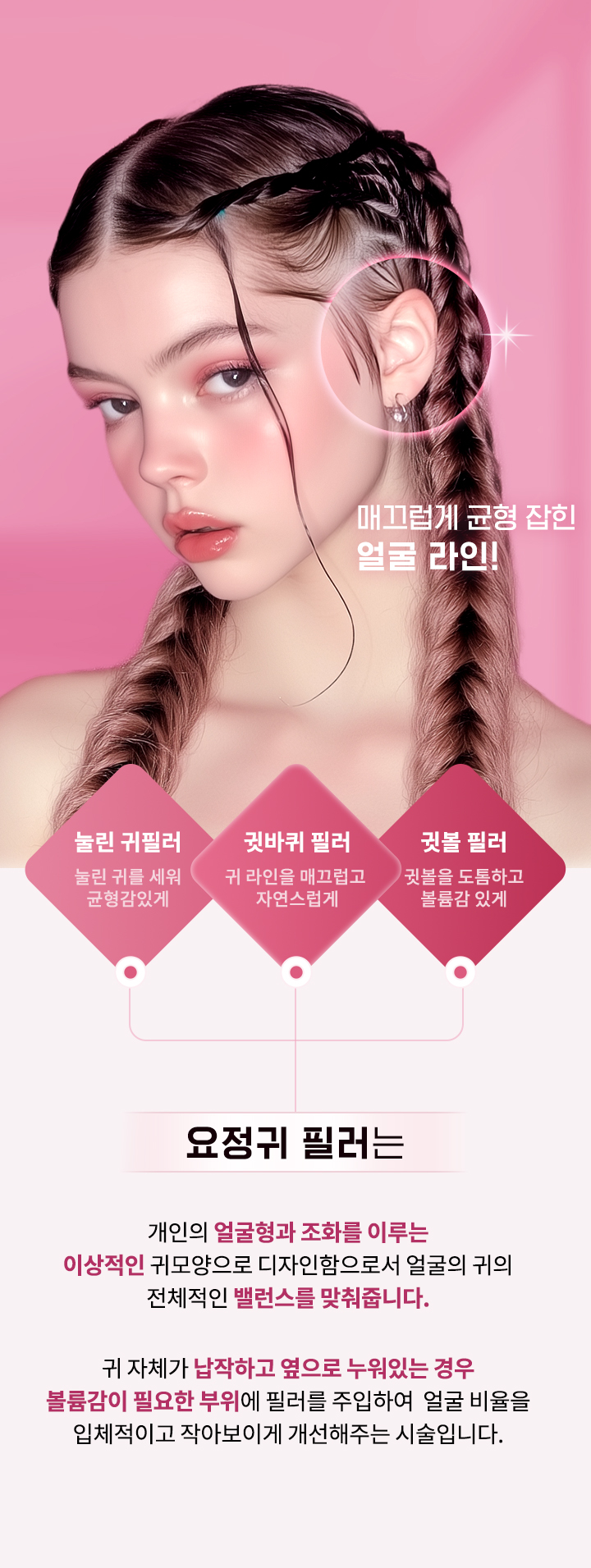 귀 자체가 납작하고 옆으로 누워있는 경우 볼륨감이 필요한 부위에 필러를 주입하여 얼굴 비율을 입체적이고 작아보이게 개선해주는 시술입니다.
